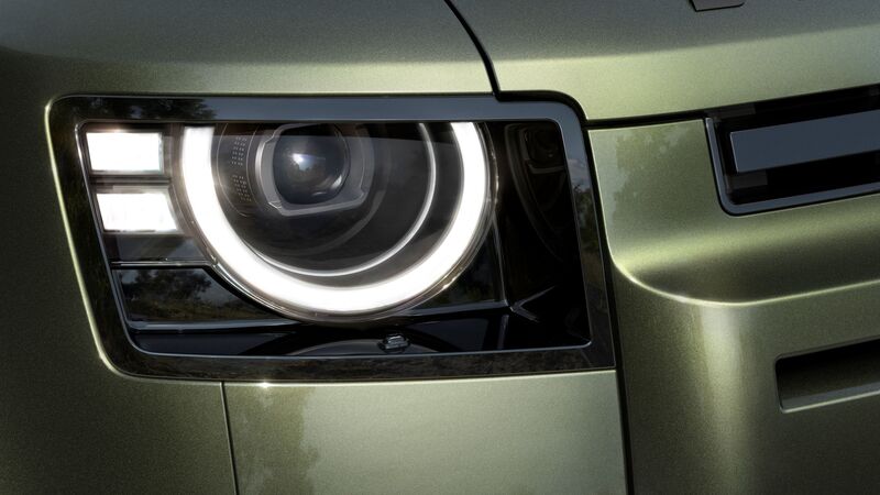全新 26 年式 Defender 重新設計的頭燈,展現更加清晰明亮的嶄新光型,優化機能性的嵌入式尾燈則採用燻黑處理,線條更加簡潔並且提升能見度。
