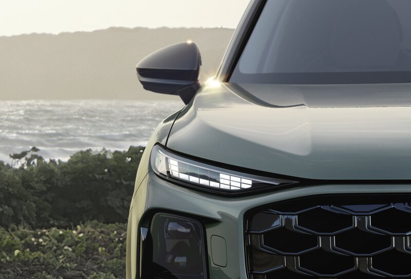 ● 照明科技領先級距:Audi首度於豪華都會休旅Q3 車系導入 Digital Matrix LED 頭燈(選配),採用最新 micro-LED 模組,以超過 25,000 顆micro-LED 帶來精準且高對比的照明,該系統更深度整合駕駛輔助科技,能將車道指引、變換車道警示、濕滑路面警示等關鍵資訊直接投射於駕駛視野前方的路面,於夜間或多變天候下給予進階安全防護。另系統更提供紅色飾光車尾徽飾、動態迎賓燈效與 OLED 尾燈 (選配),讓每一次啟程都充滿儀式感。