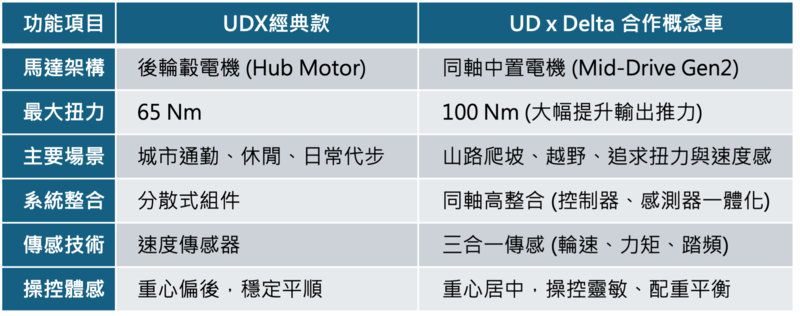 【UDX 概念車核心技術規格對比】