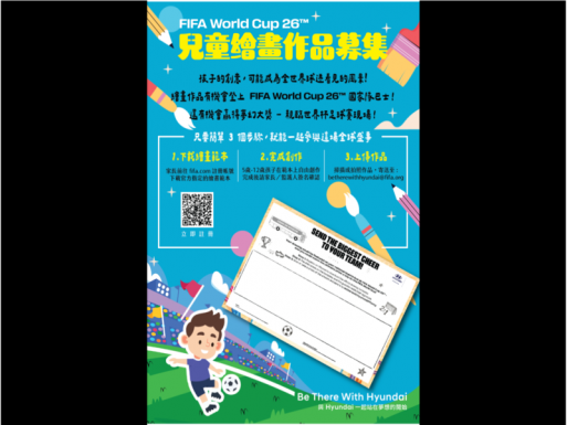FIFA World Cup 2026™ 預計將於 2026 年 6 月 11 日至 7 月 19 日舉行,由美國、加拿大、墨西哥三國聯合主辦,並首次擴增至 48 支隊伍,成為史上規模最大的 FIFA 男子世界盃。HYUNDAI汽車台灣總代理南陽實業宣布,今年台灣正式加入 FIFA World Cup 2026™ 相關活動行列,首波推出 「Be There With HYUNDAI」兒童繪畫比賽,邀請台灣車主與親子家庭一起參與,把對足球的熱情,化為孩子筆下最有力量的「進球歡呼」。