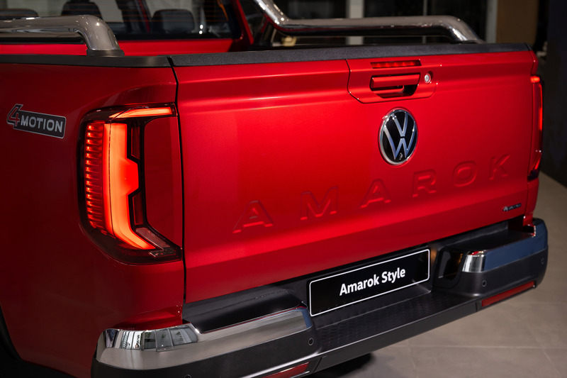 The New Amarok Style 外觀造型在保留越野運動風格同時,亦增添不少Volkswagen 高級休旅車的設計精髓,將精緻越野風格與創新科技質感完美結合。車頭前方採用車身同色的大型前保桿搭配銀色防刮下護板,將水箱護罩、前氣壩及 IQ.Light 矩陣式 LED 頭燈整合其中,搭配前後葉子板的大型外擴輪拱設計,保留越野運動皮卡充滿肌理線條的視覺感受。外觀配備則將車身同色前保桿、車身同色車側後視鏡及門把、黑色後保桿含鍍鉻飾條、車身同色尾門門把、18吋銀色鋁圈含頂級公路胎、側踏含鍍鉻飾條、鍍鉻銀車斗防護架等均為標準配備,兼顧視覺上的整體質感及日常用車的實用便利性。燈光採用「C」字型光條設計並整合日行燈/方向燈/停車燈於一體的 IQ.Light LED Matrix 矩陣式頭燈、與頭燈前後相呼應的高亮度LED尾燈、左右後視鏡照地燈、裝載平台照明燈和牌照燈等共組而成,當車輛熄火後可靈活選擇開啟車輛外部四個區域的照明,夜間的照明便利性大幅提升。