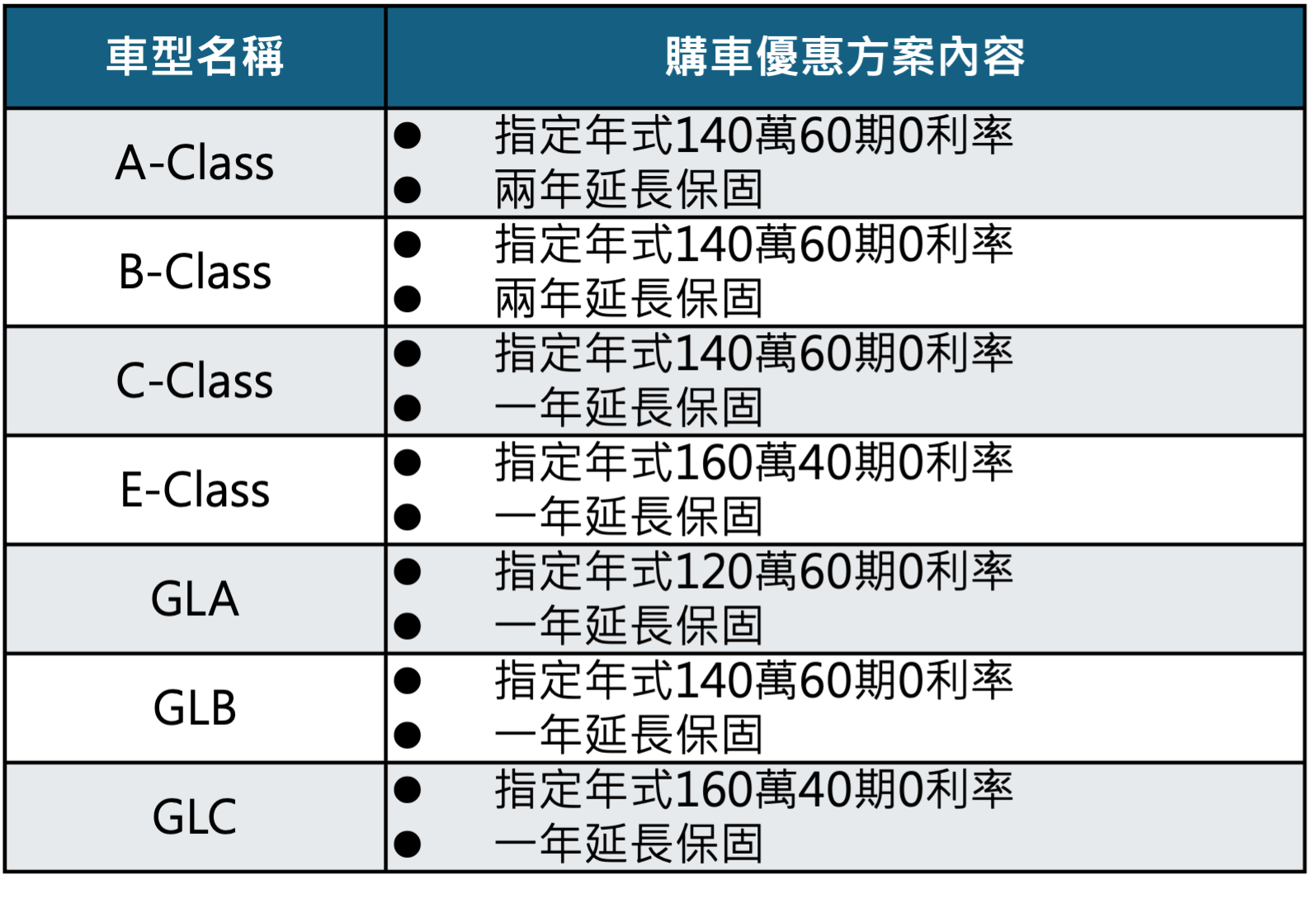 *延長保固限申辦台灣賓士/台灣賓士資融提供之貸款方案適用。