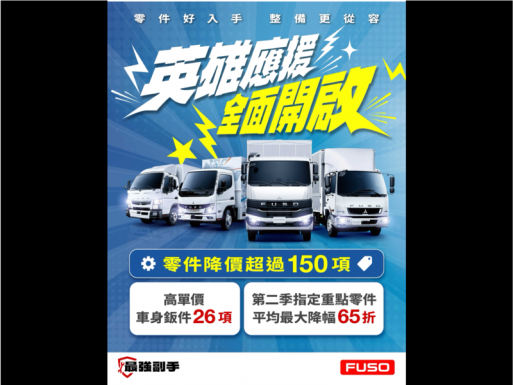 期間限定Canter重點零件折扣平均65折 2026裕益汽車商用車巡迴展「FUSO生活節」熱烈登場!