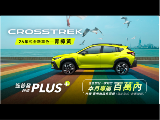 連續多年蟬聯JNCAP五星大賞的跨界潮旅Crosstrek,其安全科技配備更是傲視同級對手,不僅是同級唯一搭載SAWD對稱式全時四輪驅動系統、BOXER水平對臥引擎、SGP全球模組化底盤,以及標配三鏡頭的進階版EyeSight 4.0智能駕駛安全輔助系統(*註)等四大核心科技的CUV車款,靈活駕馭好開易上手的特性,絕對是創造精彩生活的首選車款!跨界潮旅Crosstrek 針對26年式新車全面升級最先進的EDSS駕駛異常自動煞停系統,讓安全更上一層樓,另推出「青檸黃」、「沙丘金」新車色搶眼亮相,即刻開放預訂!凡於本月訂車即可再享「SANGEAN多功能戶外收音機」限量訂車禮;此外25年式Crosstrek指定車款本月超狂優惠價109.8萬起,搭配政府舊換新最高補助百萬內即可輕鬆入主,再享90萬50期0利率並升級專用無線充電,全車系均加贈原廠5年或12萬公里延長保固。