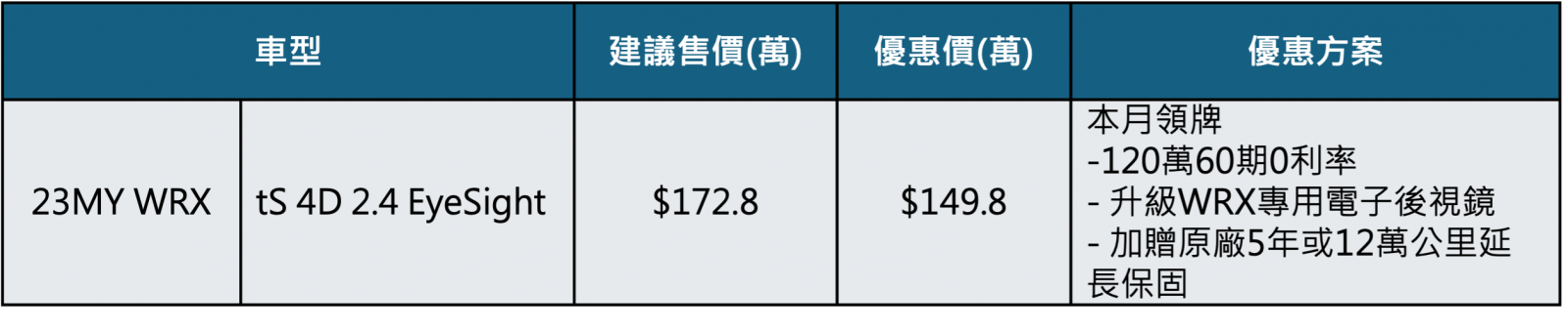 點燃你的駕馭熱情 WRX指定年式最後超殺優惠價149.8萬起限量倒數